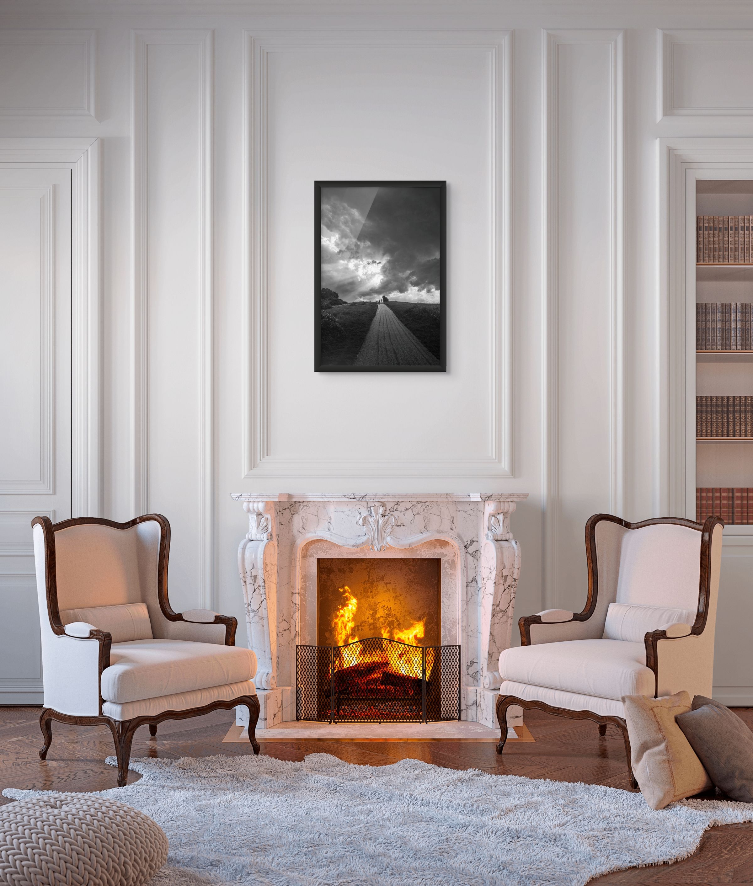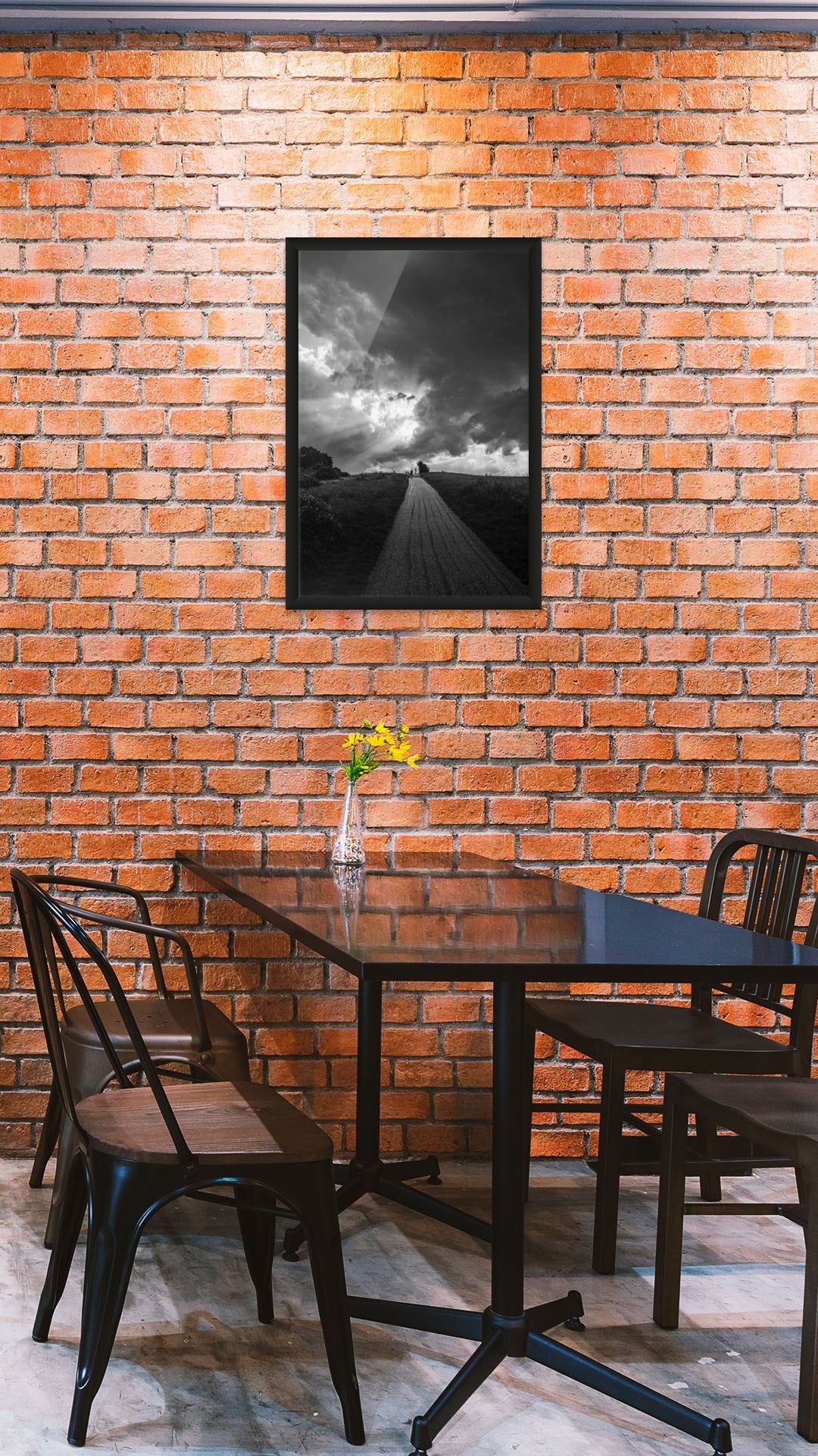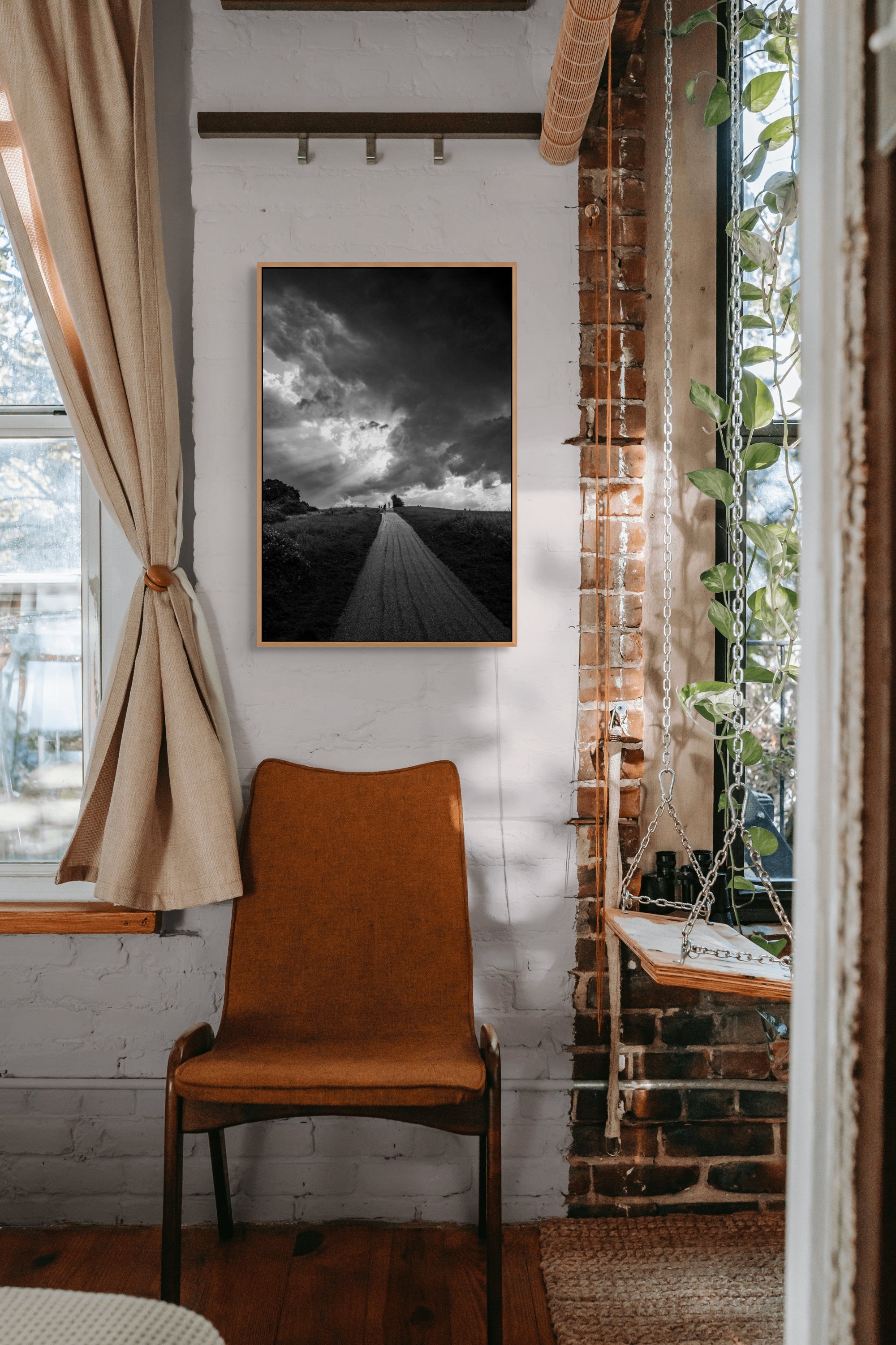 Vertical Power: The strong vertical composition of the road leading into the vast sky makes this an ideal piece for taller walls, stairwells, or as a strong vertical anchor in a gallery wall arrangement. It adds height and momentum to any room.