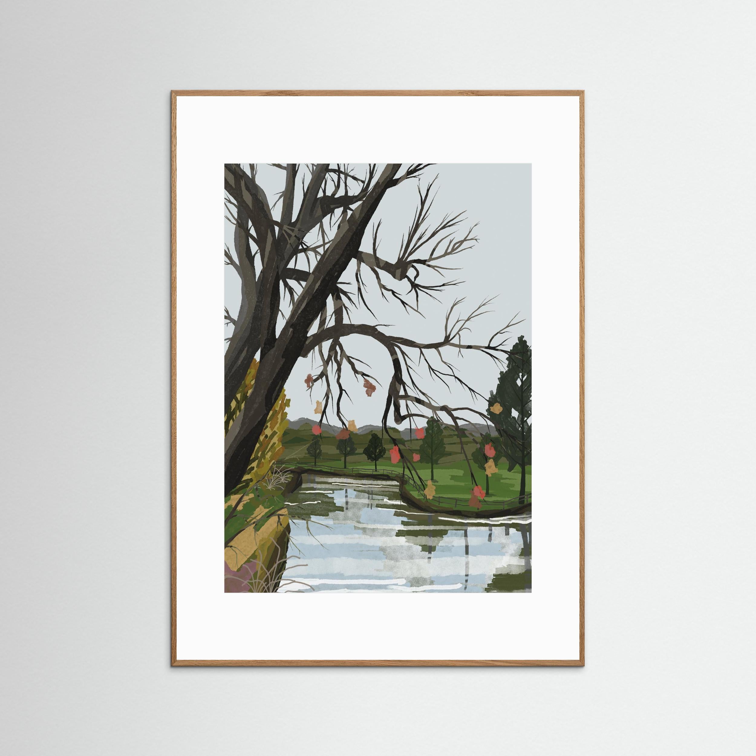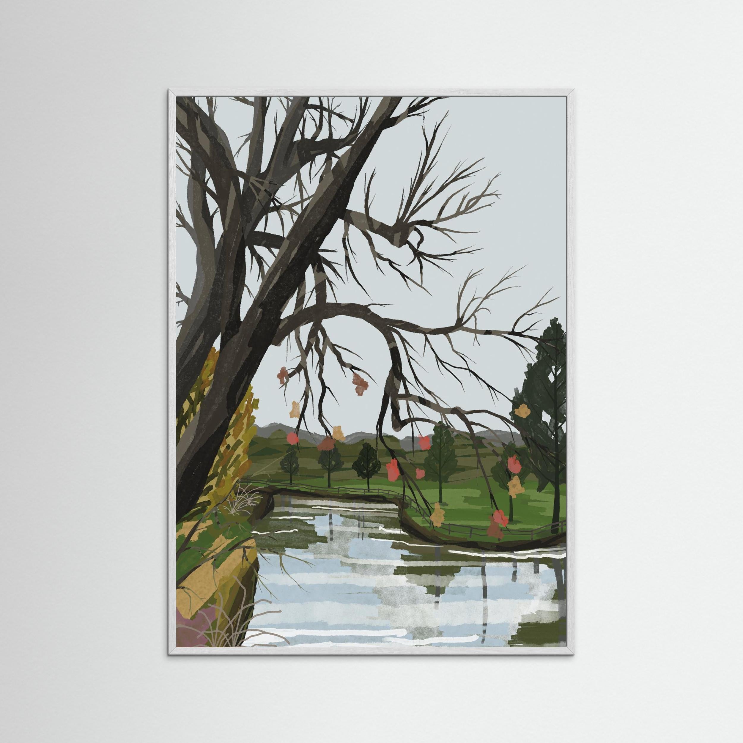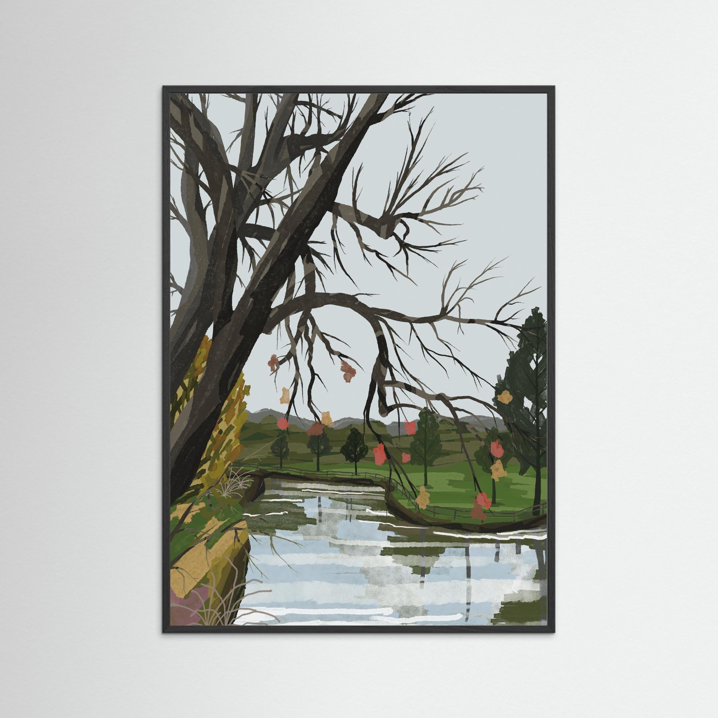 Transform your interior with River Canopy, a poignant and evocative addition to the Zeta Contemporary illustration collection. This piece captures a moment of quiet transition, where the intricate, skeletal beauty of winter branches meets the soft, rhythmic flow of a mirrored river. It is a sophisticated study in reflection and resilience, designed to bring a sense of calm, intellectual depth to your home gallery.