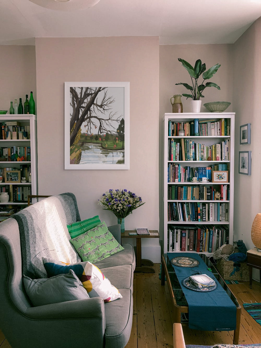 Atmospheric Design: River Canopy moves beyond simple landscape art, utilizing a muted, tonal palette and painterly textures that are hallmarks of the Zeta Contemporary style.